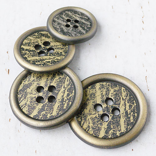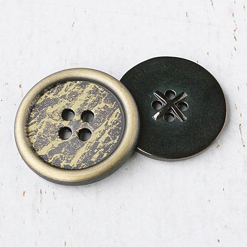 堤防付きのプレーンなボタンの内側に、特殊な加工でエイジング仕上げを施しました。