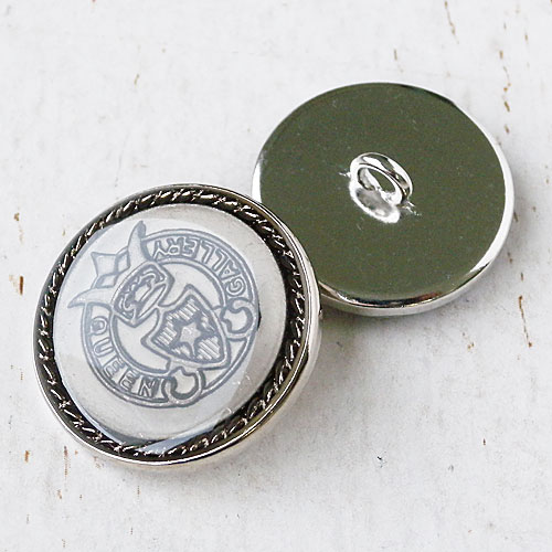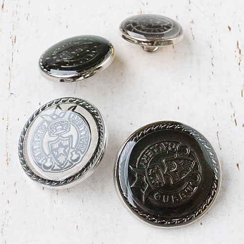 エンブレムのレリーフ模様を、透明エポキシ樹脂でコーティングしたメタルボタンです。