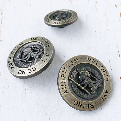 古いコインを思わせる、立体感のあるレリーフが特長のブレザーボタンです。