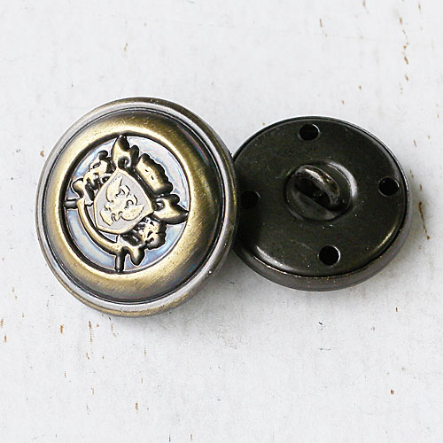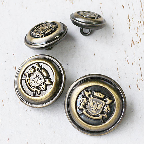 エンブレム模様のレリーフとレトロな色で、年代を感じさせるボタンに仕上がっています。