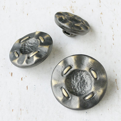 表面のテクスチャーにこだわった、光沢を抑えたアンティーク仕上げのメタルボタンです。