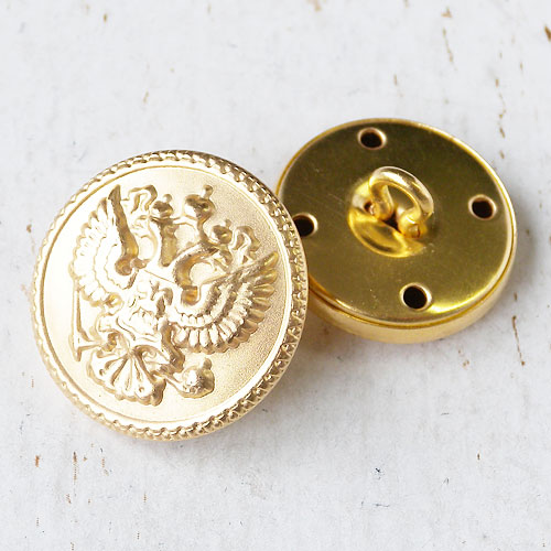 金属素材の真鍮版をプレス成型する製法で作られたメタルボタンです。