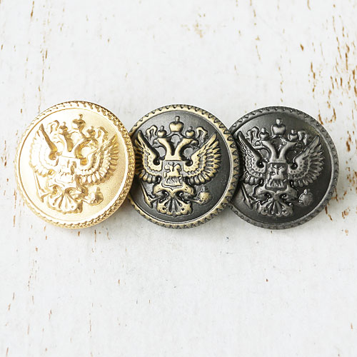 エンブレム模様の繊細なレリーフを表現したメタルボタンです。