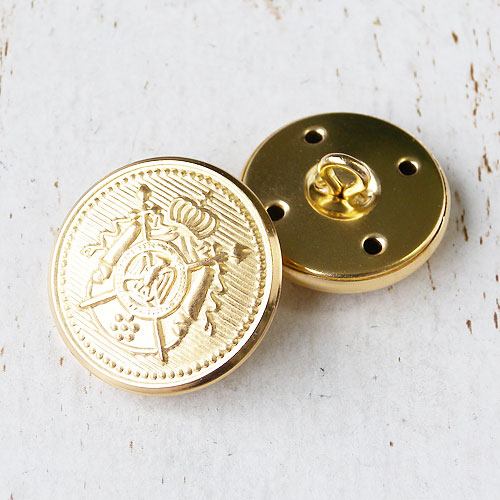 真鍮版をプレス成型する製法で作られたメタルボタンです。