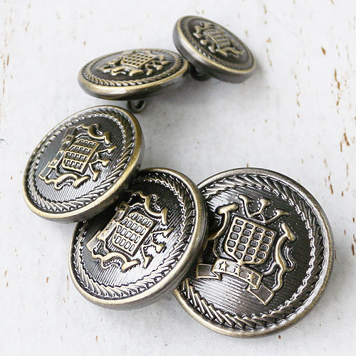 真鍮版をプレス成型する製法で作られたメタルボタンです。