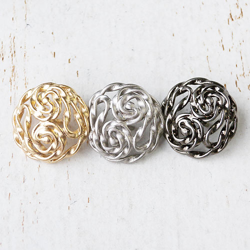 リボンをくるくると巻いて作ったように見えるほど、軽やかなメタルボタンです。
