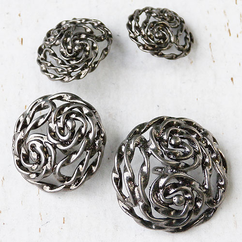若干、重さを感じますが、ロストワックス製法ならではの透かし模様で、軽やかな印象を与えてくれるボタンです。