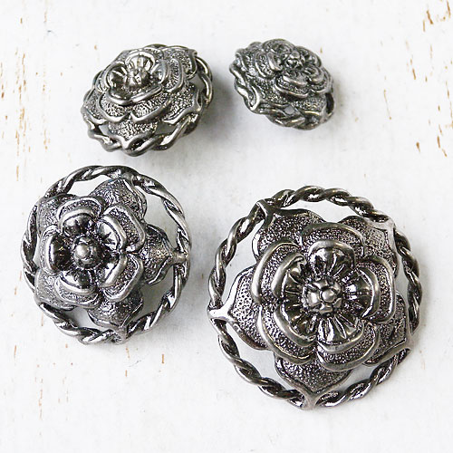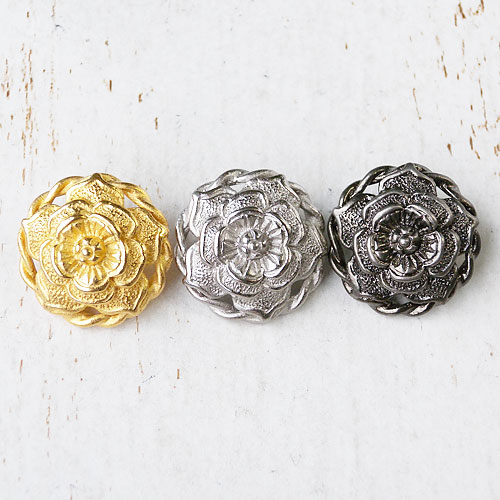 若干、重さを感じますが、ロストワックス製法ならではの透かし模様で、軽やかな印象を与えてくれるボタンです。