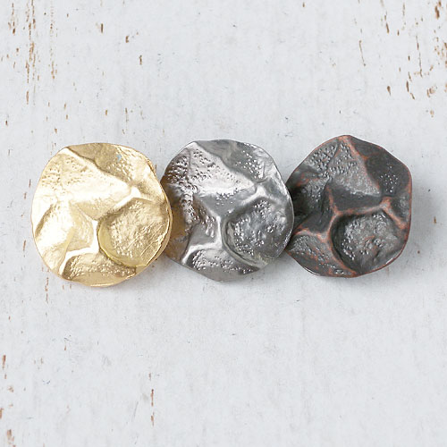 クシャっと握った時の音まで聞こえてきそうな、リアルな折り目を再現したメッタルボタンです。