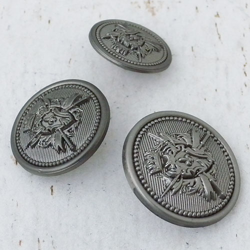 細かなレリーフに墨入れ加工でヴィンテージ風に仕上げたボタンです。