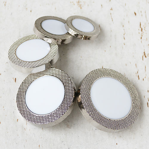 中央にホワイトチョコのようなエポキシ樹脂を配したボタンです。