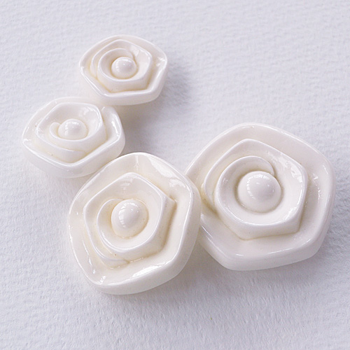 ポリエステル素材を使用した、立体的な花のボタンです。