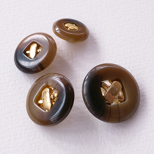 水牛調ポリとメタルパーツのコンビネーション・ボタンです。レトロな風合いでお洋服や小物におススメのボタンです。
